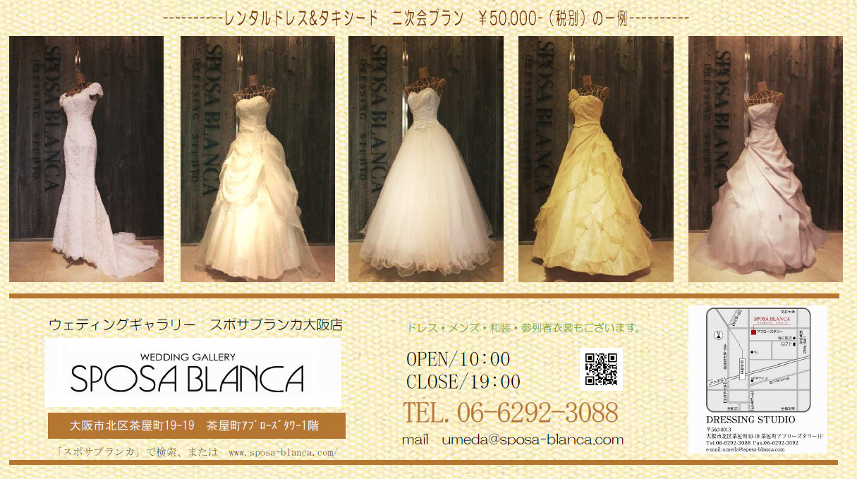 大阪 丸福衣裳店(スポサブランカ SPOSA BLANCA) 式服の貸衣装・写真・着付は阪急豊中駅前