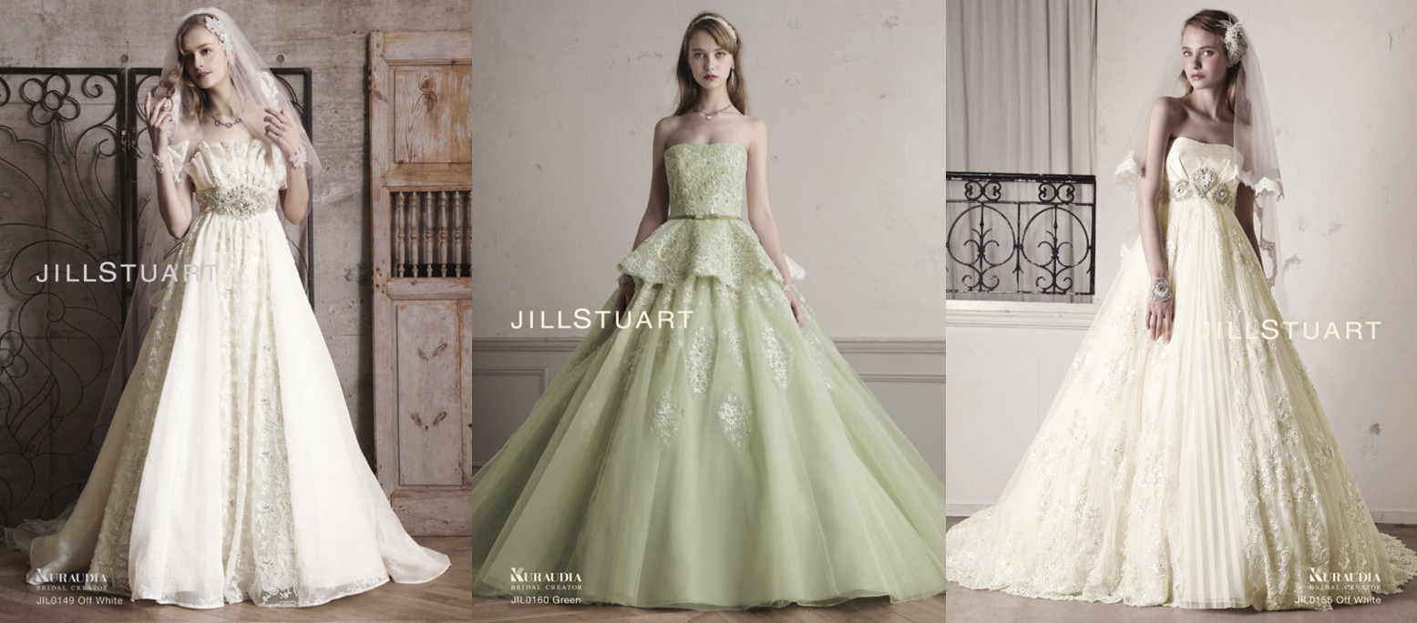 JILLSTUART(ジル スチュアート) 繊細で立体的なレースをふんだんにあしらいった、爽やかな大人のグリーンのカラードレス。